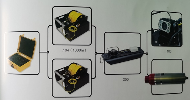 组成部分:漂浮器、摄像头、控制器、电缆架、声纳